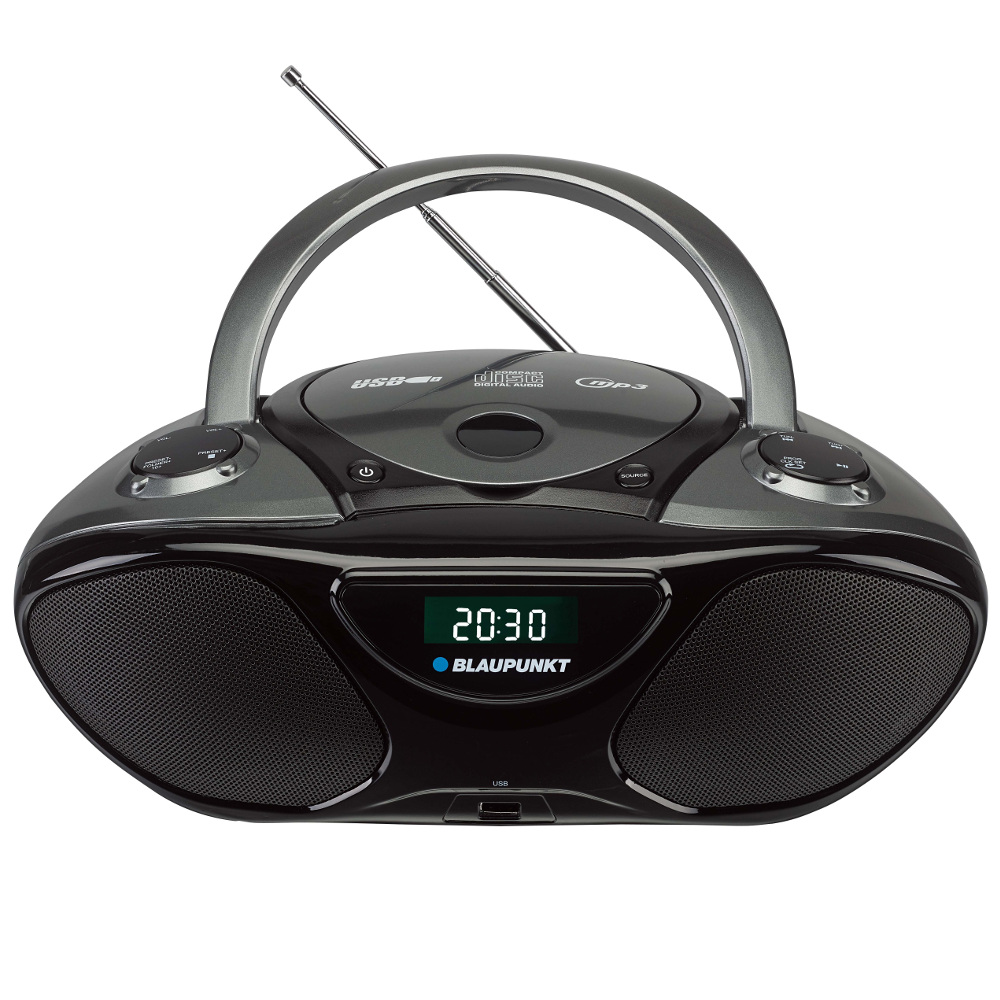 Radioodtwarzacz przenośny to dziś stały element wyposażenia pokoju nastolatka, salonu kosmetycznego czy sali dydaktycznej. Jest obecny wszędzie tam, gdzie wymagany jest subtelny podkład muzyczny, w pomieszczeniu gdzie szykuje się małe towarzyskie spotkanie lub w miejscu, gdzie niezbędny jest odsłuch płyt CD z materiałami szkoleniowymi. Duża funkcjonalność, a zarazem prostota obsługi sprawiają, że radioodtwarzacze te mogą wykorzystywać zarówno dzieci, jak i osoby dorosłe.#13#10#13#10Boombox BB14BK marki Blaupunkt to model, który wyposażono w odtwarzacz CD z odczytem plików MP3. Daje to użytkownikowi możliwość odsłuchu ulubionych płyt CD z muzyką lub popularnych audiobook-ów z ogromnym wyborem książek do słuchania. Urządzenie posiada również tuner FM z możliwością zapisania w pamięci aż 40 stacji radiowych, a cały proces strojenia jest bardzo łatwy i nie zajmuje wiele czasu. Funkcję tą z pewnością docenią te osoby, które mają w zwyczaju codzienny odsłuch informacji emitowanych przez ulubioną rozgłośnię.#13#10#13#10BB14BK posiada również gniazdo USB do podłączenia wszelkich zewnętrznych nośników z zapisanymi plikami MP3.#13#10#13#10Odtwarzacz automatycznie zdekoduje i odtworzy zapisane na przenośnej pamięci USB utwory i pozwoli nam szybko cieszyć się ulubionymi piosenkami podczas każdego spotkania towarzyskiego. Dodatkowo w przedniej części obudowy dostępne jest gniazdo AUX, dzięki któremu możliwe jest podłączenie różnych innych urządzeń, które posiadają analogowe wyjście dźwięku. Wystarczy proste połączenie i można się cieszyć zdecydowanie lepszą jakością dźwięku.#13#10#13#10Ten radioodtwarzacz przenośny może być zasilany zarówno z sieci elektrycznej, jak również za pomocą 6 wymiennych baterii R14. Dzięki temu urządzenie może służyć jako odtwarzacz stacjonarny lub jako przenośne źródło rozrywki. Komfortu obsługi dopełnia czytelny wyświetlacz LCD, na którym wyświetlana jest częstotliwość wybranej stacji radiowej, numer utworu lub aktualna godzina.