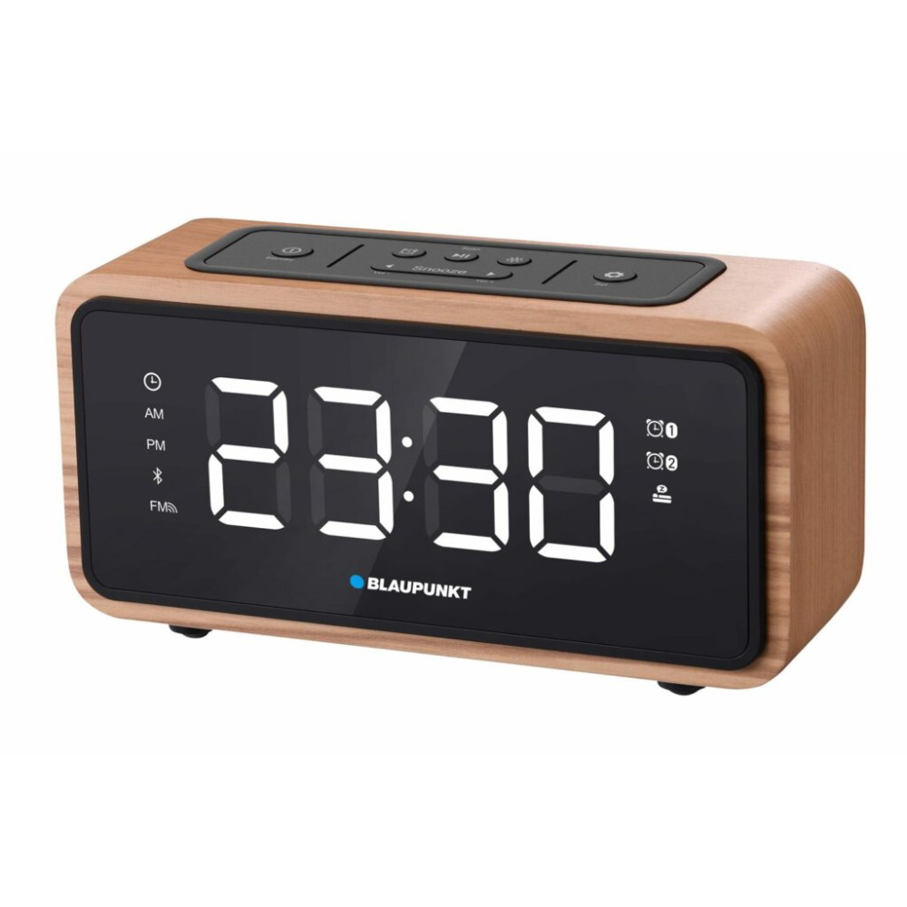 Radiobudzik to urządzenie, które w domu posiada każdy. Jego podstawową funkcją jest wskazanie aktualnej godziny oraz budzenie przyjemnymi dźwiękami użytkownika.#13#10#13#10Model CR60BT marki Blaupunkt, wyróżnia, spośród innych dostępnych na rynku modeli radiobudzików, drewniana obudowa z bass reflexem zapewniająca lepszy dźwięk. Radiobudzik ten, poza funkcją budzenia alarmem radia lub brzęczykiem, umożliwia także bezprzewodowe odtwarzanie muzyki ze smartfonów i tabletów. Gwarantuje to funkcja Bluetooth, w którą producent wyposażył urządzenie. Słuchanie ulubionej rozgłośni radiowej zapewnia radio FM PLL z pamięcią 60 stacji radiowych, co daje możliwość wybrania i zapamiętania tych najbardziej bliskich naszym upodobaniom. Model CR60BT wyposażony jest w teleskopową antenę FM, co zapewnia lepszy odbiór stacji.