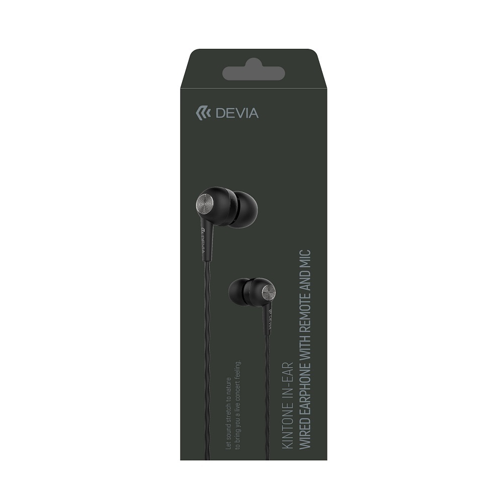 Devia słuchawki przewodowe Kintone jack 3,5mm dokanałowe czarne