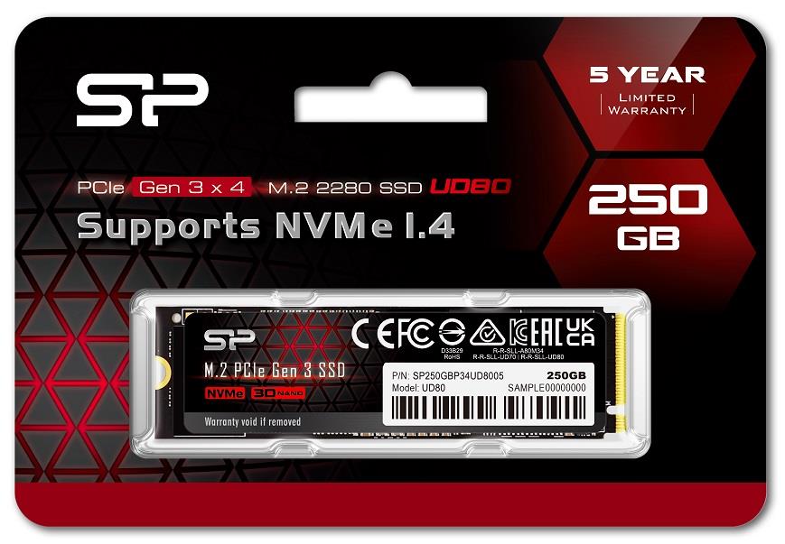 250 GB marka: Silicon Power o parametrach: Dysk SSD Silicon Power UD80 250GB M.2 2280 PCIe Gen3x4 NVMe (3400/1800 MB/s)