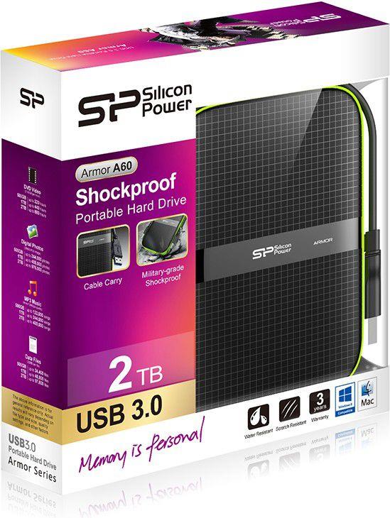 Dysk zewnętrzny Silicon Power ARMOR A60 2TB 2,5″ USB 3.0 BLACK-GREEN/PANCERNY wstrząso/pyło i wodoodporny IPX4