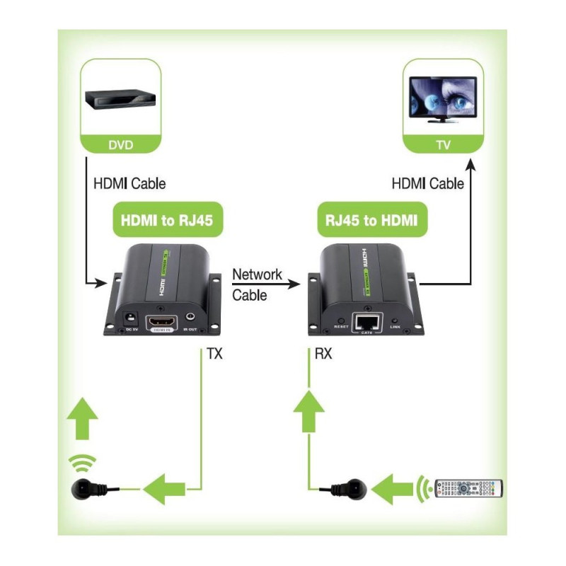 Techly IDATA EXT-E70I, 020355 – Przedłużacz Extender HDMI 1080p po Skrętce LAN RJ45 Cat6/6a/7 do 60m z Obsługą Pilotów IR