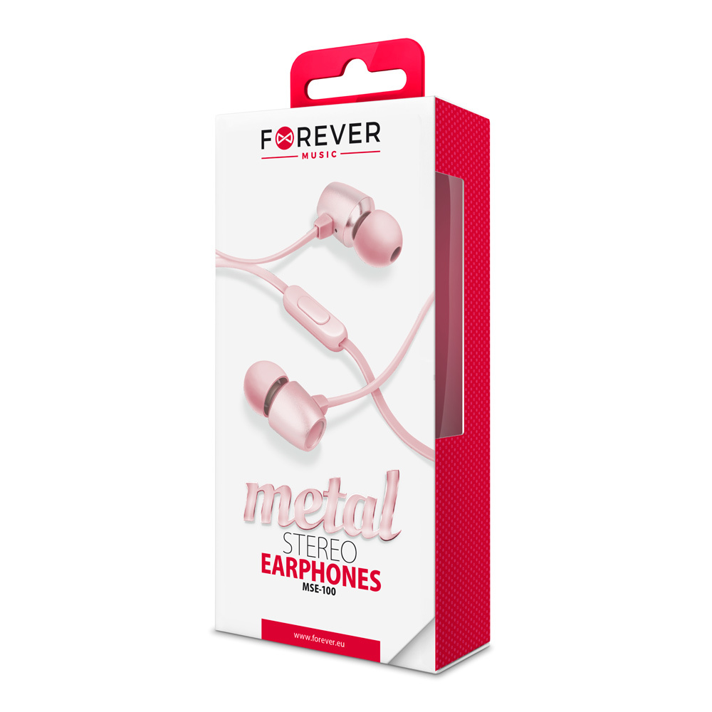 Forever słuchawki przewodowe MSE-100 dokanałowe jack 3,5mm różowo-złote