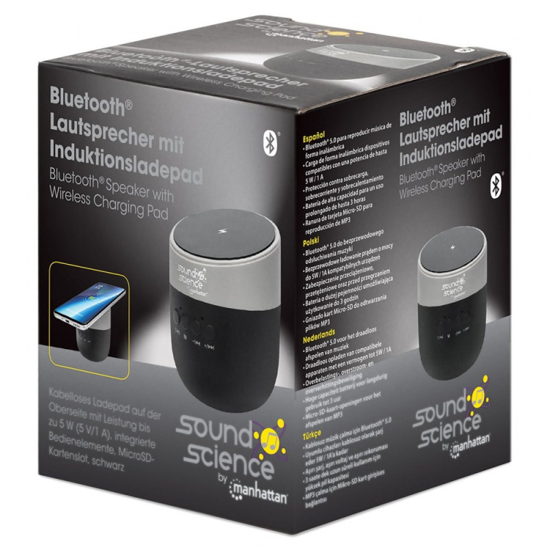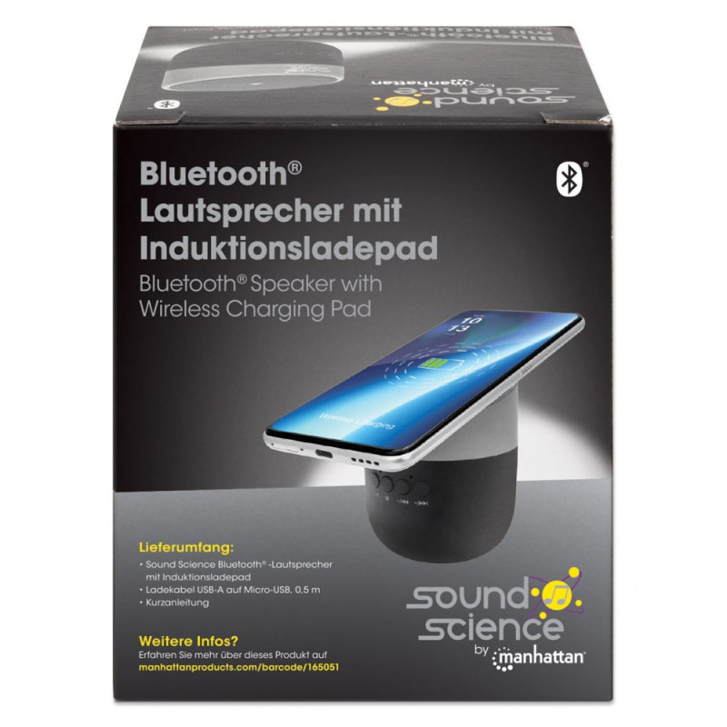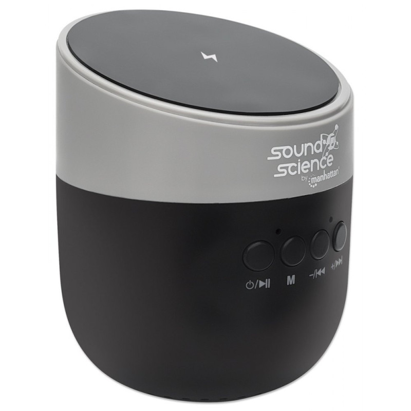Głośnik BT SoundScience by Manhattan 165051 – Bezprzewodowy Mini Głośnik Bluetooth 5.0 z Ładowarką Indukcyjną 5W (5V/1A)