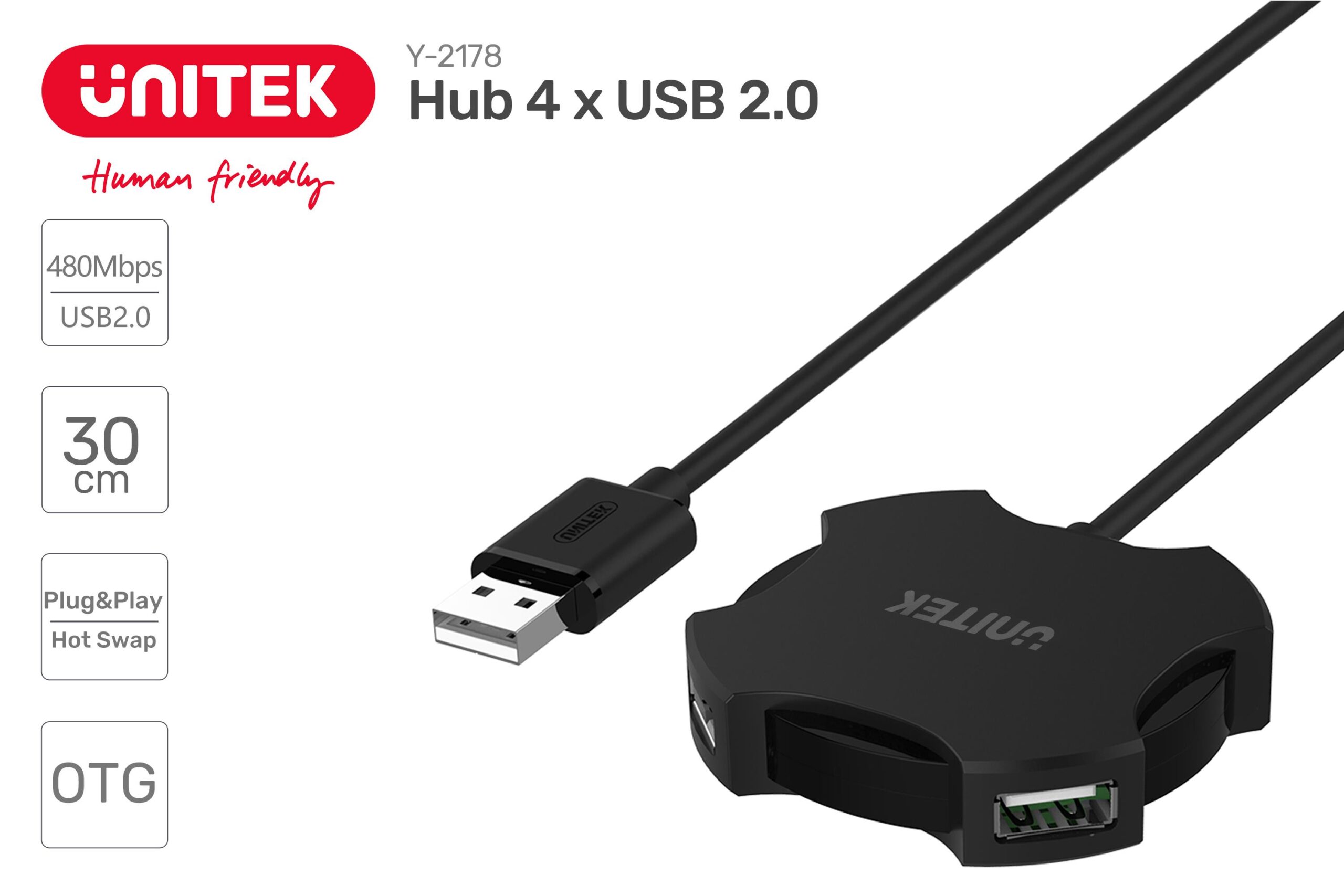 USB 2.0 Type-A marka: Unitek o parametrach: Hub USB Unitek Y-2178 4x USB 2.0 micro – czarny