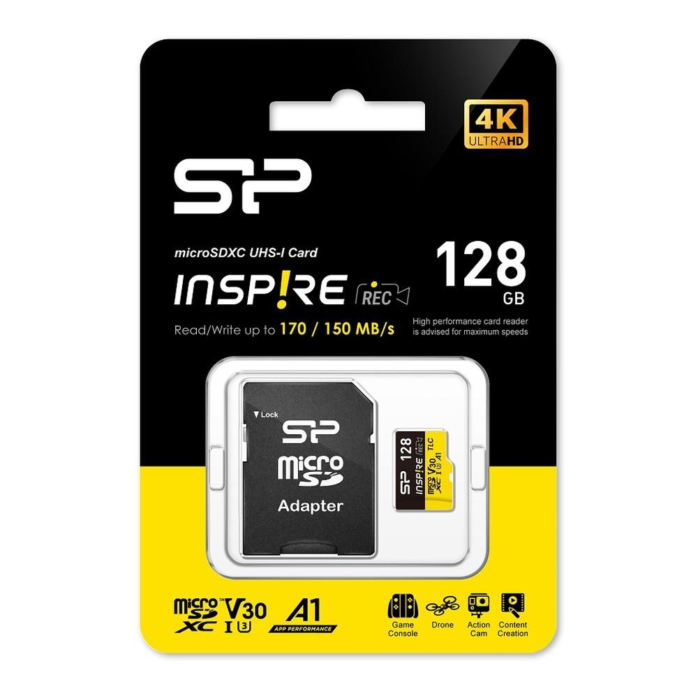 Karta pamięci marka: Silicon Power o parametrach: Karta pamięci Silicon Power microSDXC Inspire 128GB V30 UHS-I U3 A1 4K DDR200 170/150MB/s TLC + adapter