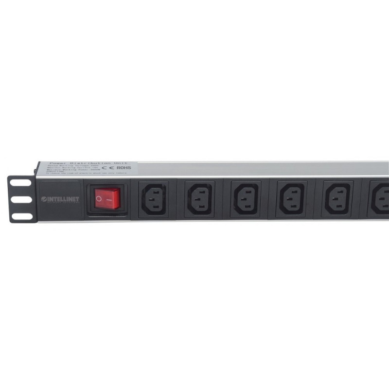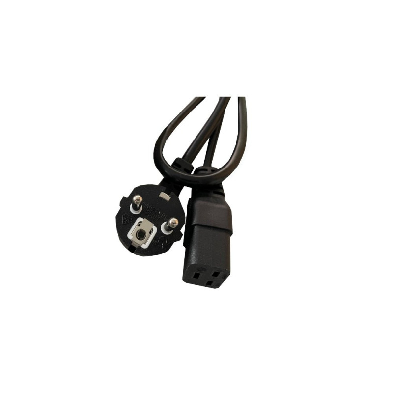 - Odłączany kabel zasilania o długości 2m, wyposażony z jednej strony we wtyk C19 (do gniazda C20 w listwie), z drugiej strony we wtyczkę do gniazda prądowego typu F Schuko