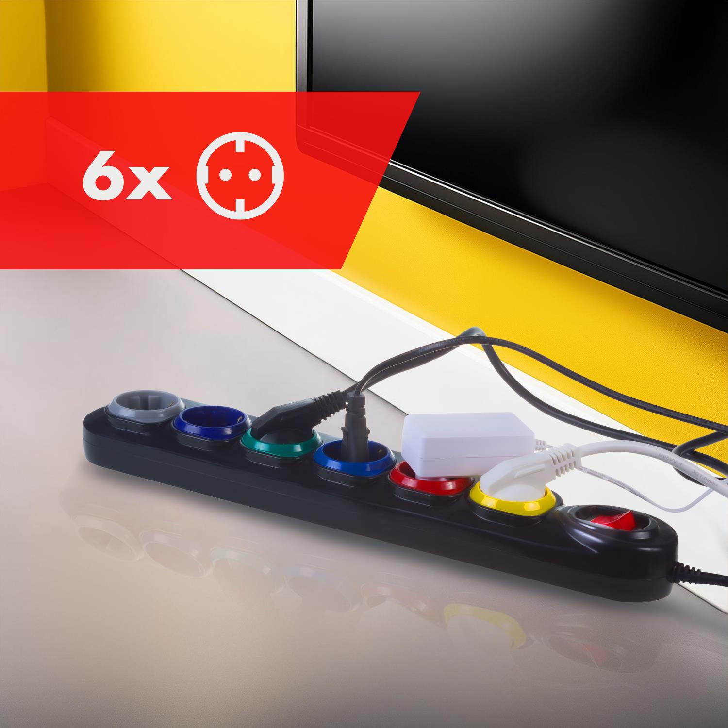 6 marka: Maclean o parametrach: Listwa zasilająca Maclean MCE509 B przedłużacz 6 gniazd, z włącznikiem, 250VAC/10A, 1,5m