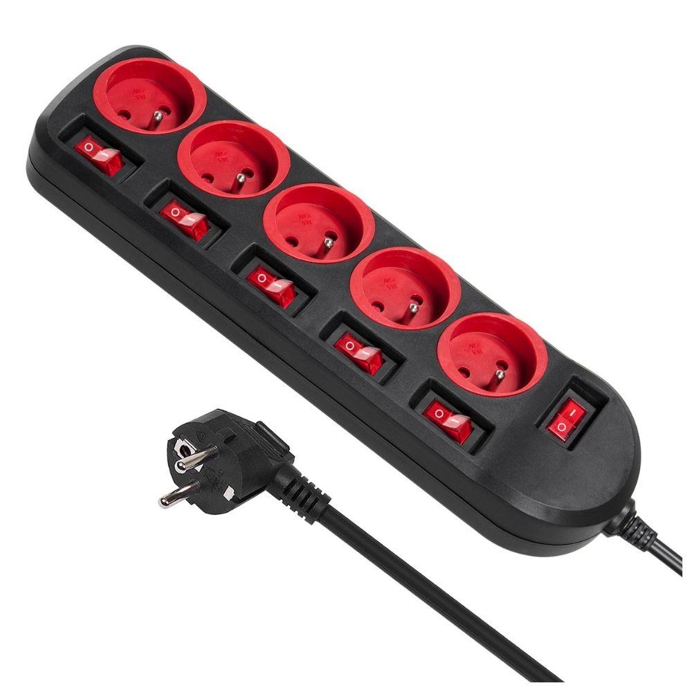Listwa zasilająca przedłużacz Maclean MCE204 5 gniazd z włącznikami czarna 1,5m 2300W