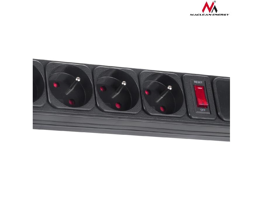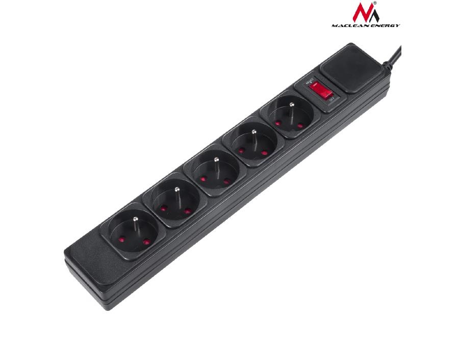 5 marka: Maclean o parametrach: Listwa zasilająca przedłużacz Maclean MCE219 5 gniazd z włącznikiem przeciwprzeciążeniowym 250VAC/10A 1,5m