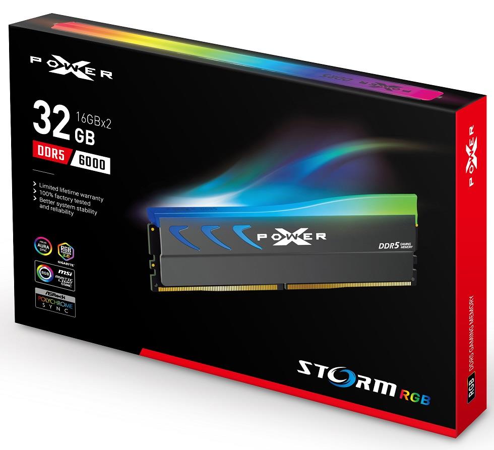 Pamięć RAM marka: Silicon Power o parametrach: Pamięć DDR5 Silicon Power XPOWER Storm RGB Gaming 32GB (2x16GB) 6000MHz CL36 1.35V UDIMM Gray