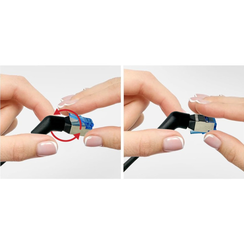 Zawartość opakowania patchcord RJ45 kątowy 90° i obrotowy 180° Cat6a UTP slim, 100% miedź, TPE