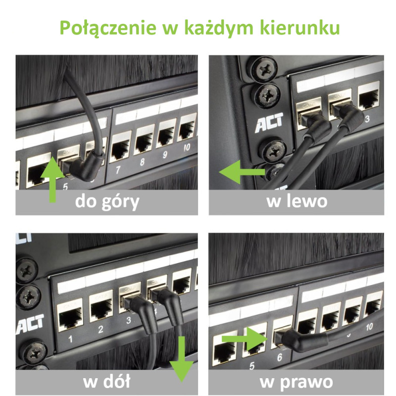 • Idealne rozwiązanie do ograniczonej przestrzeni (np. w panelach krosowych w szafach Rack 19″) lub przy podłączaniu laptopa kablem do sieci