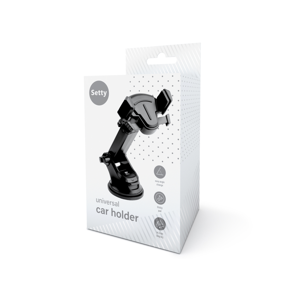 Uchwyt samochodowy montowany na szybie lub desce rozdzielczej pozwala na stabilne umiejscowienie telefonu w zasięgu wzroku i rąk kierowcy. Teleskopowa noga pozwala na dostosowanie jej długości. Konstrukcja uchwytu pozwala na obsługiwanie go przy pomocy jednej ręki.