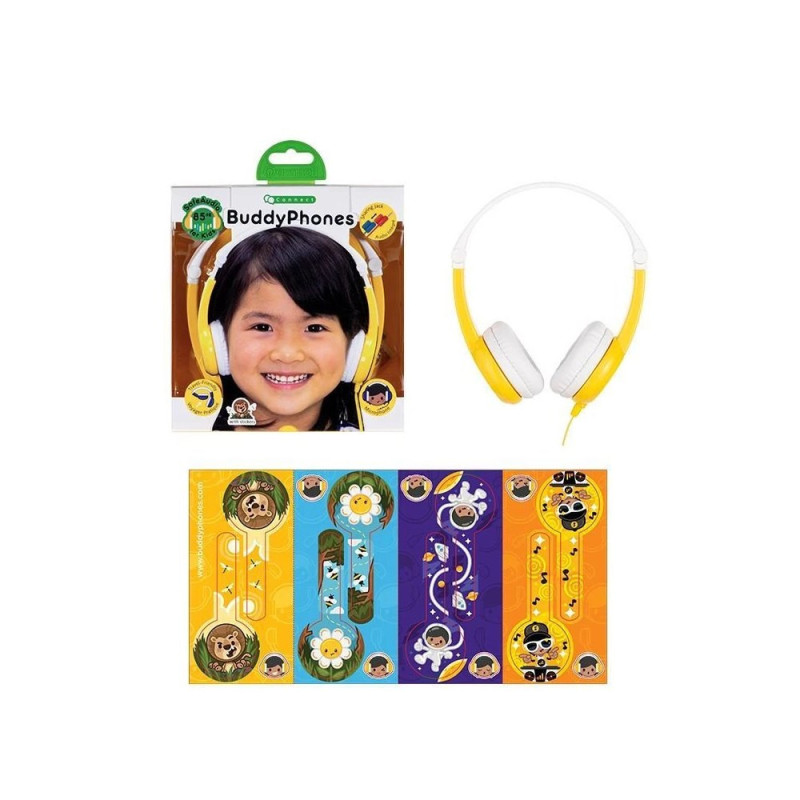 Słuchawki BuddyPhones Connect Yellow, BP-CO-YELLOW-01-K – Słuchawki dla Dzieci 3+ z Ograniczeniem Głośności (85dB), z Rozdzielaczem Audio BuddyJack oraz Mikrofonem na Kablu