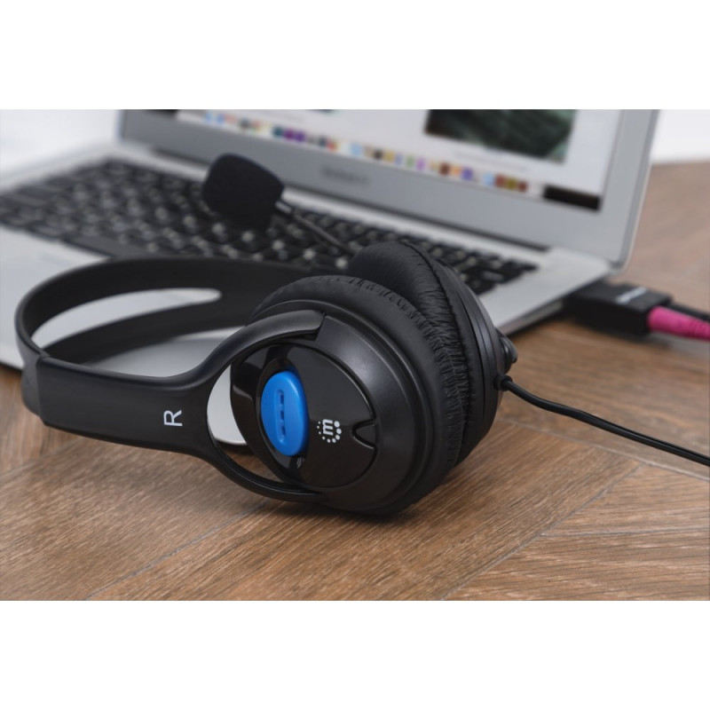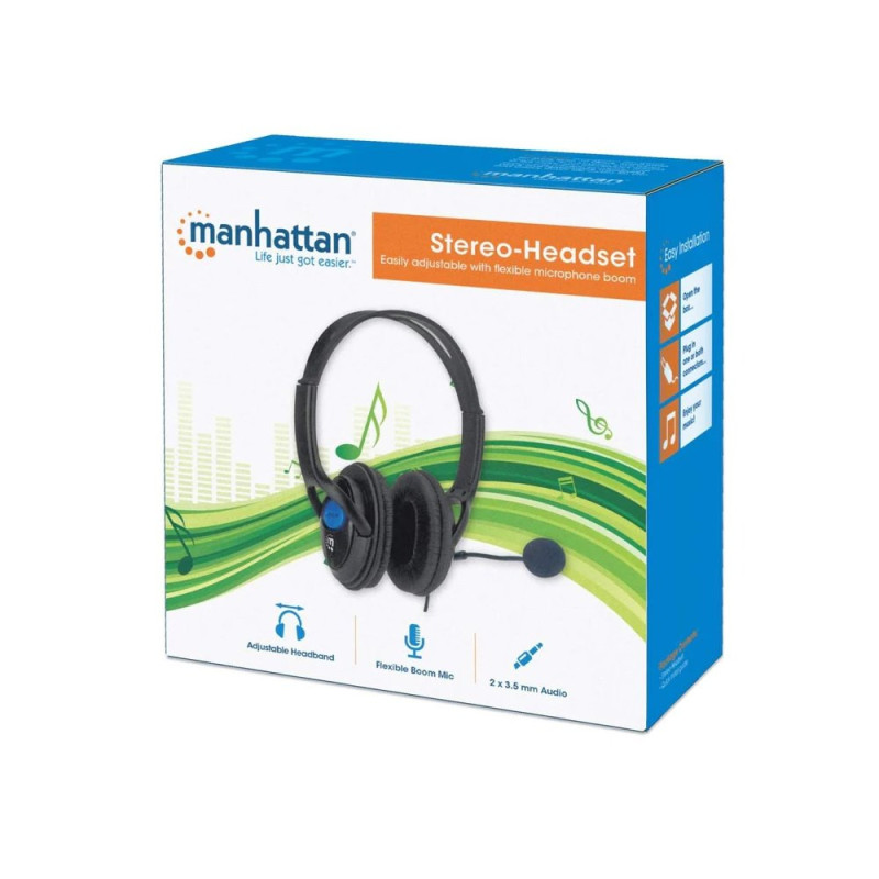 Manhattan 179317 – Słuchawki Komputerowe Stereo z Mikrofonem Jack 3.5mm, Zamknięte