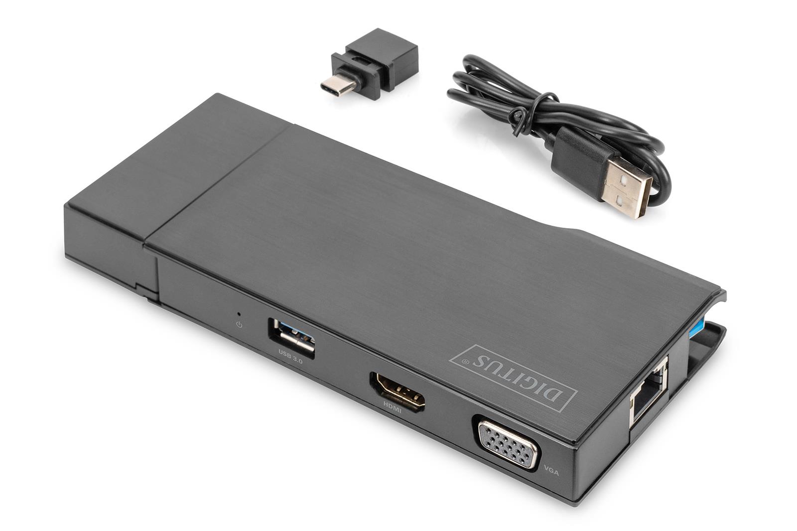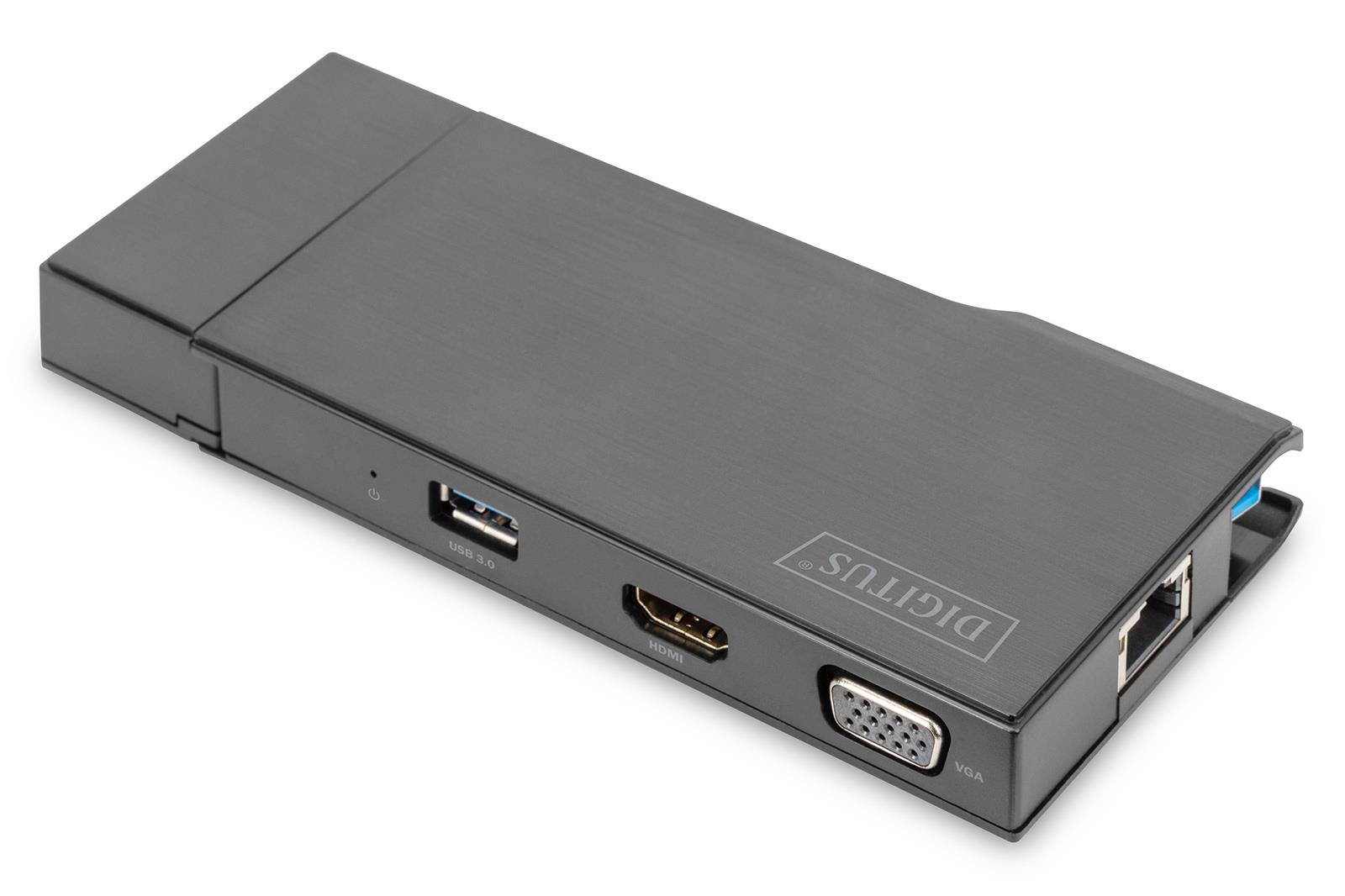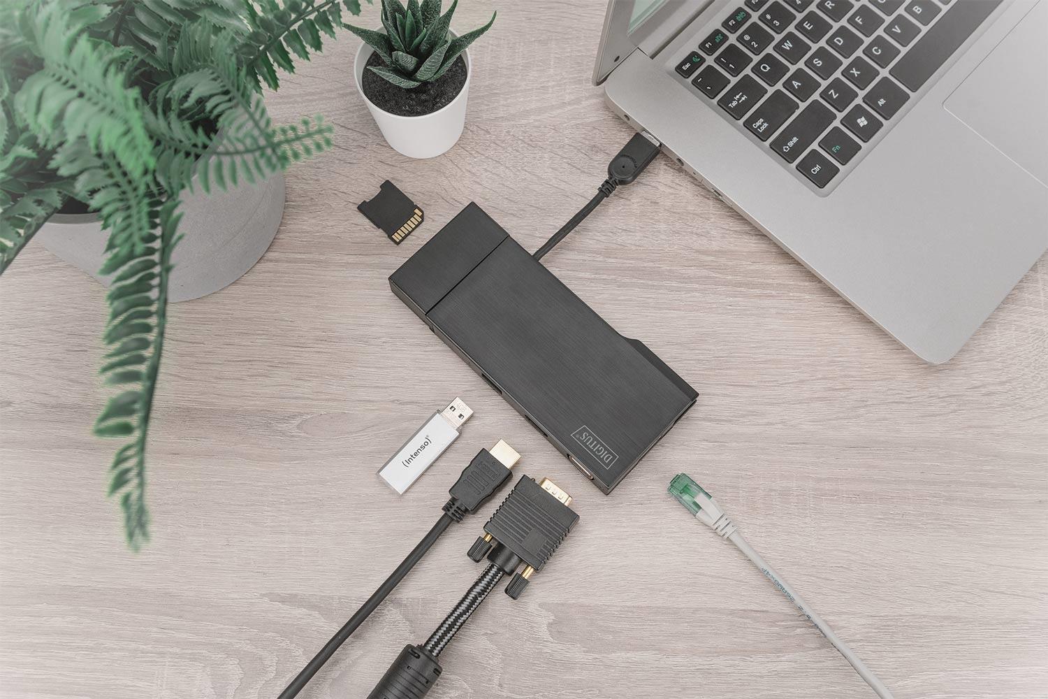 0.10 marka: Digitus o parametrach: Stacja dokująca DIGITUS USB Typ A 7-portów, 4K 30Hz, HDMI, VGA, 2x USB 3.0, SD microSD, RJ45