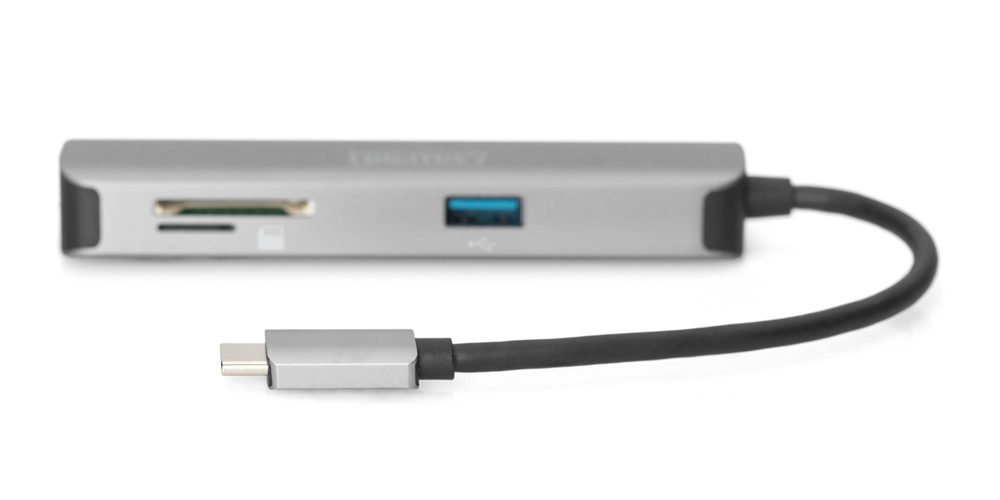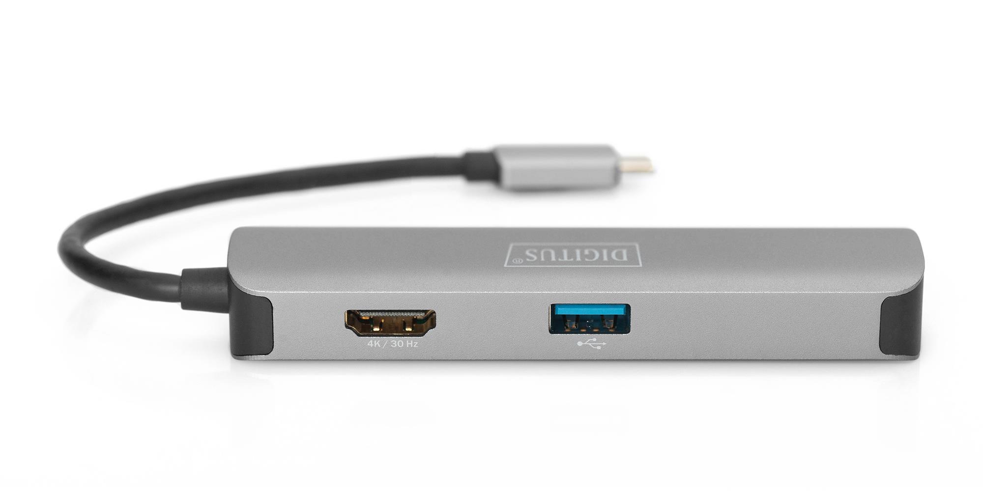 Stacja dokująca DIGITUS USB Typ C 5 portów 4K 30Hz HDMI 2x USB3.0 microSD SD/MMC srebrna