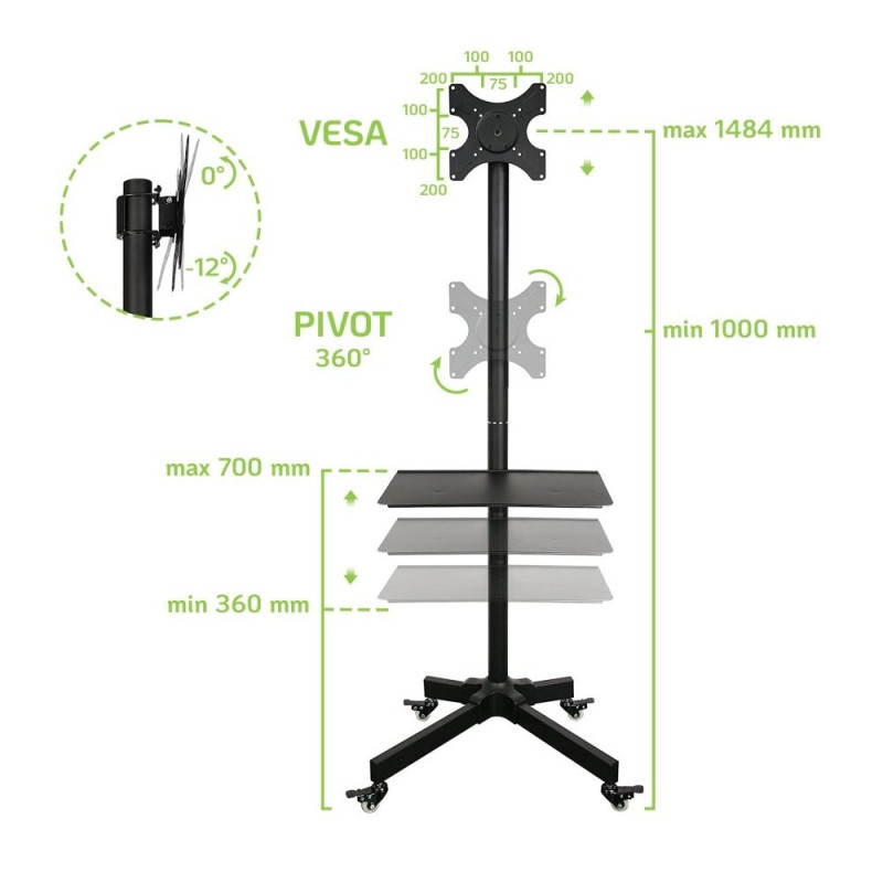 Techly ICA-TR20, PN: 100723 – Mobilny Stojak Podłogowy TV LED/LCD 19″ – 37″ 20kg Regulowany
