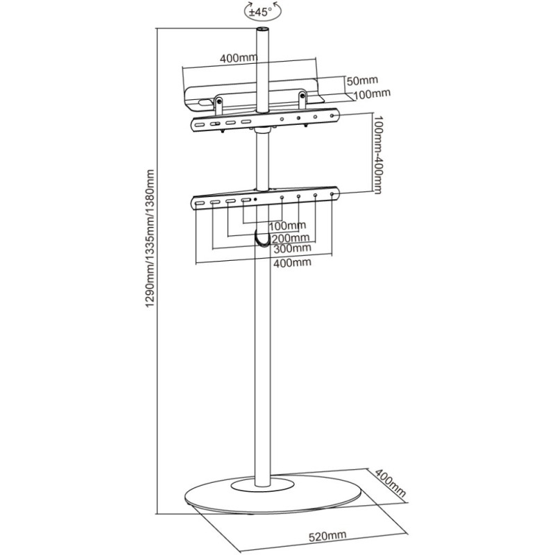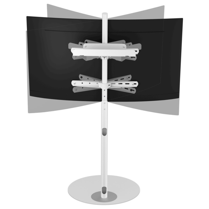 - Trzystopniowa regulacja wysokości (1290/1335/1380 mm) oraz skrętu (±45°) pozwalają na ustawienie optymalnej widoczności ekranu