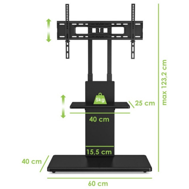 - Specjalna konstrukcja pozwala na niezależną regulację wysokości pionowej kolumny oraz wsporników TV, wysokości całkowita do 1232 mm