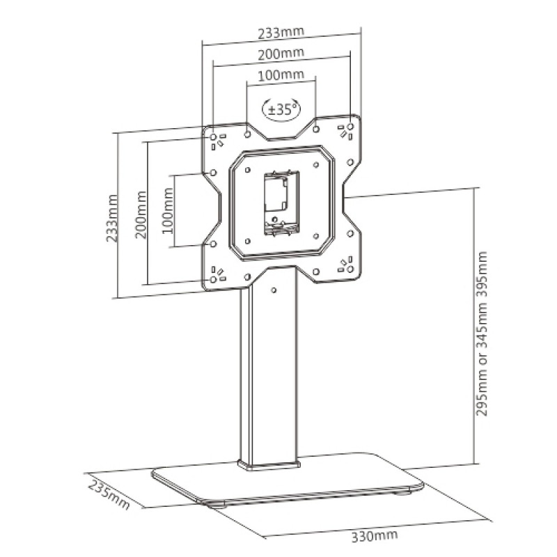 Uniwersalny stojak na biurko, szafkę RTV czy komodę do monitora lub telewizora od 23” do 43” LED/LCD, z regulacją wysokości oraz skrętu o ±35°, VESA, czarny