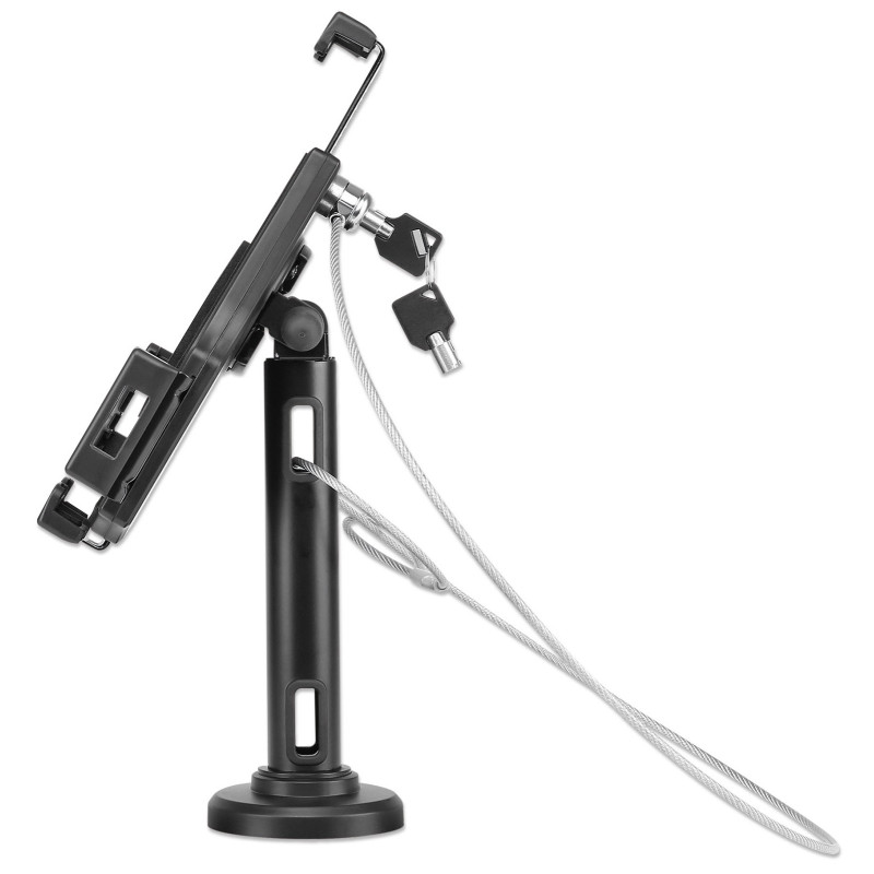 Antykradzieżowy uchwyt biurkowy lub ścienny do tabletów 7.9” – 11” z blokadą na zamek i linkę.