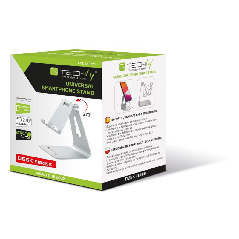 Aluminiowy stojak podstawka pod telefon lub tablet, regulacja 270°, srebrny