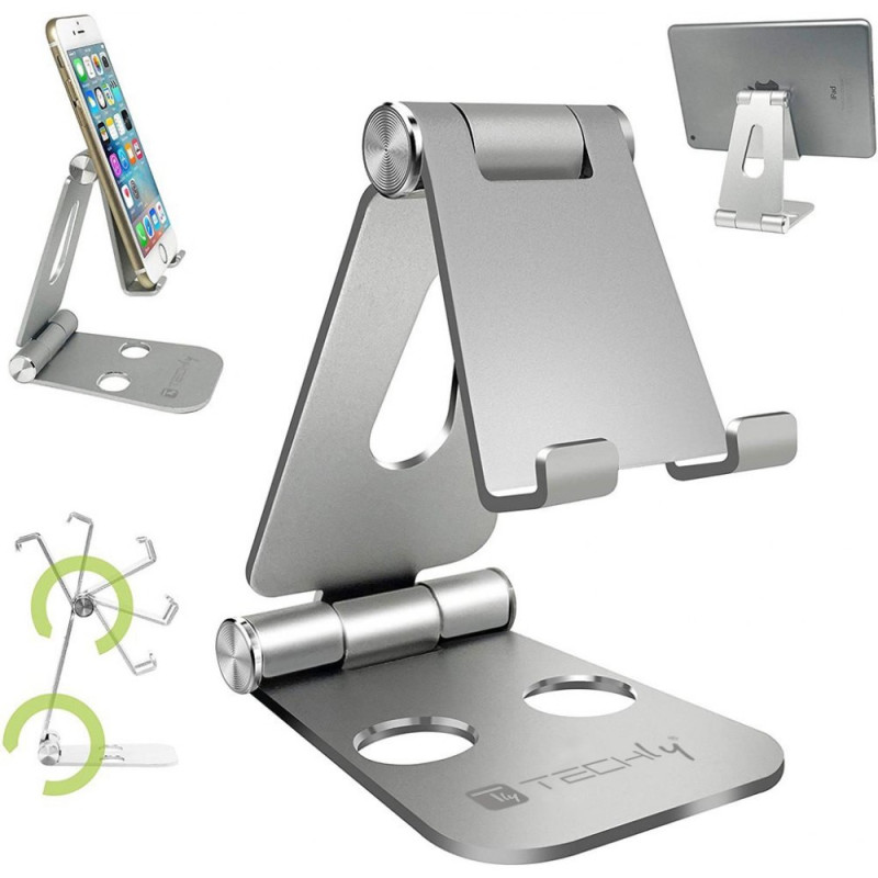 Aluminiowy stojak podstawka pod telefon, tablet na biurko, składany, regulacja 270° Srebrny