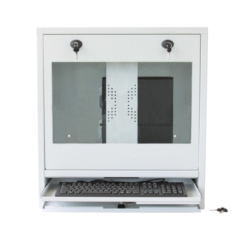 Szafa PC Techly ICRLIM10W, P/N: 104899 – Szafa na komputer przemysłowy PC oraz monitor LED/LCD o wielkości do 22″ z wysuwaną półką na klawiaturę i myszkę