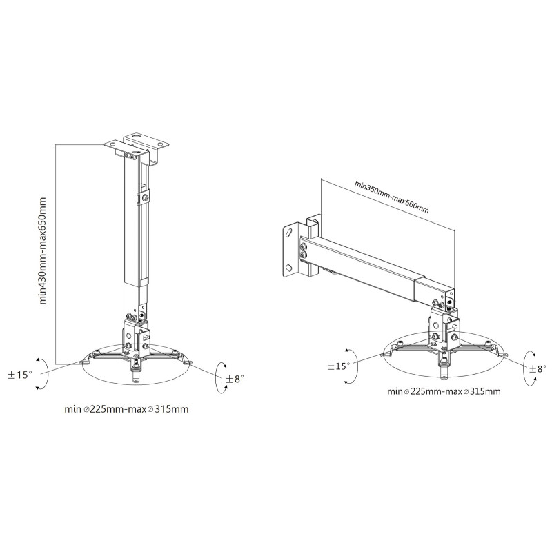 Uniwersalny uchwyt sufitowy lub ścienny do projektora, regulacja długości 43 – 65 cm 35 – 56 cm
