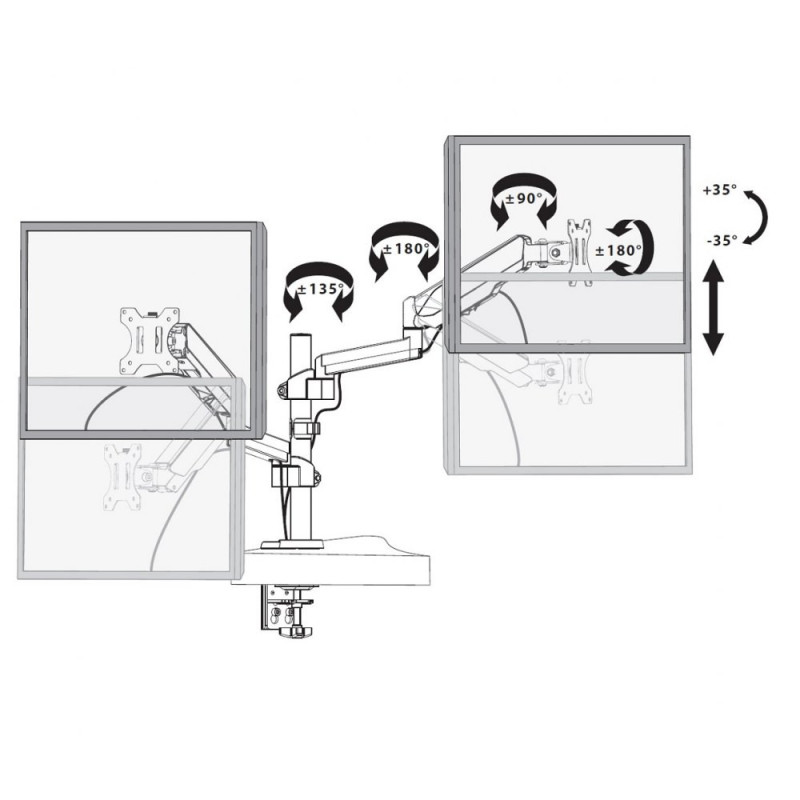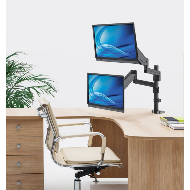 • Umożliwia montaż dwóch wyświetlaczy LED/LCD ponad blatem biurka