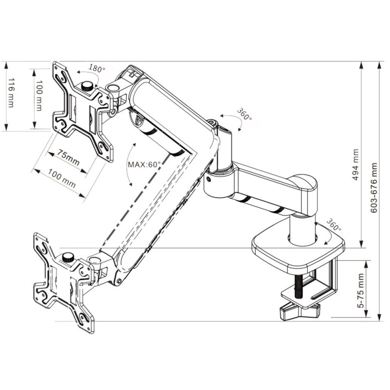 - Wbudowana regulacja siły naprężenia sprężyny pozwala na idealne dopasowanie do wagi monitora