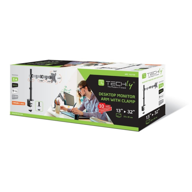 • Umożliwia szybki montaż monitora LCD/LED o wielkości od 13 do 32” ponad blatem biurka