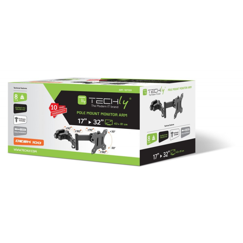 Uchwyt LCD Techly ICA-LCD 110BK, P/N: 107159 – Przegubowy Wysięgnik Uchwyt na Słup do Monitora LCD/LED 17” – 32” 8kg Obrotowy