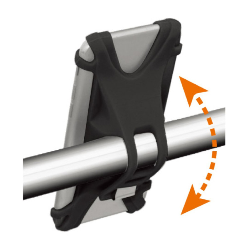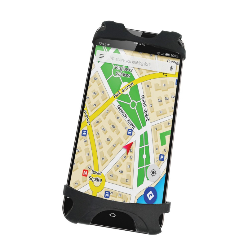 - Silikonowa, elastyczna ramka pewnie mocuje telefony od 4″ – 6″
