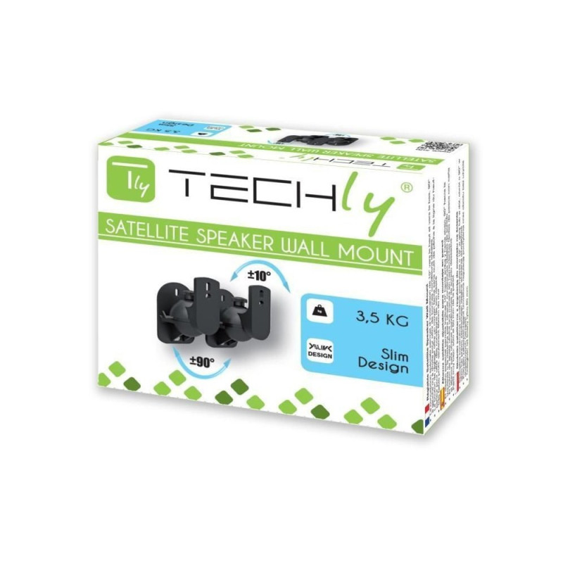 Techly ICA-SP SS28, 309692 – Uniwersalny Uchwyt Ścienny do Głośnika Satelitarnego, Kolumny Głośnikowej, 3.5kg, Regulowany, Zestaw 2 Sztuki