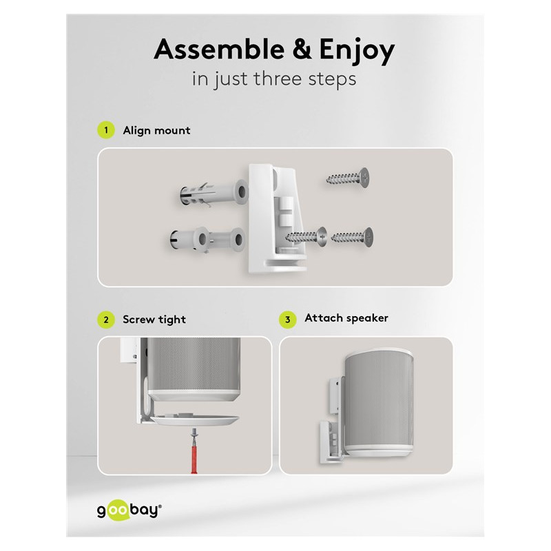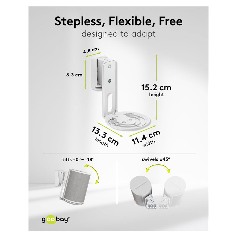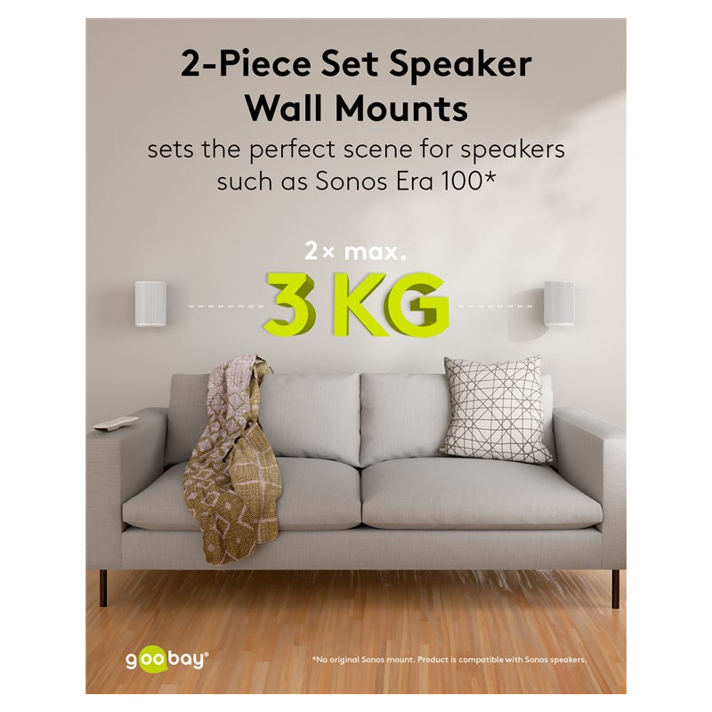 Goobay 71982 – Uchwyt ścienny do głośników Modern Era 1 Flex, zestaw 2 sztuk, biały