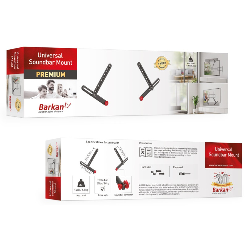 • Bogate wyposażenie: wraz z uchwytem VESA TV do głośnika Soundbar Barkan w zestawie znajdują się elementy montażowe, w tym różne warianty rozmiarowe śrub, podkładek i dystansów do telewizora