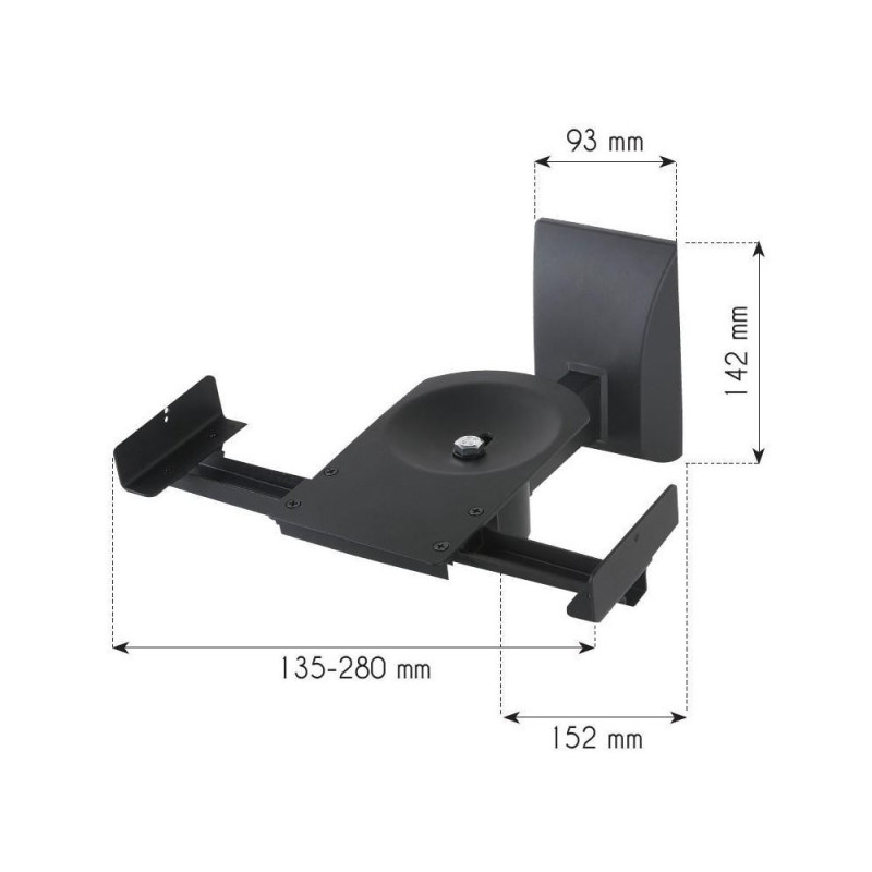 Aby zapewnić jeszcze lepsze wrażenie akustyczne w trakcie seansu uchwyt ścienny do głośnika satelitarnego Techly ICA-SP SS201 wyposażony został w przegub kulowy umożliwiający regulacją kąta nachylenie głośnika o ±7.5° oraz regulację skrętu o ±45°. Dodatkowym atutem uchwytu Techly jest możliwość regulacji szerokości montażowej głośnika w zakresie 135 – 280 mm dzięki czemu uchwyt można stosować z kolumnami głośnikowymi różnej wielkości.