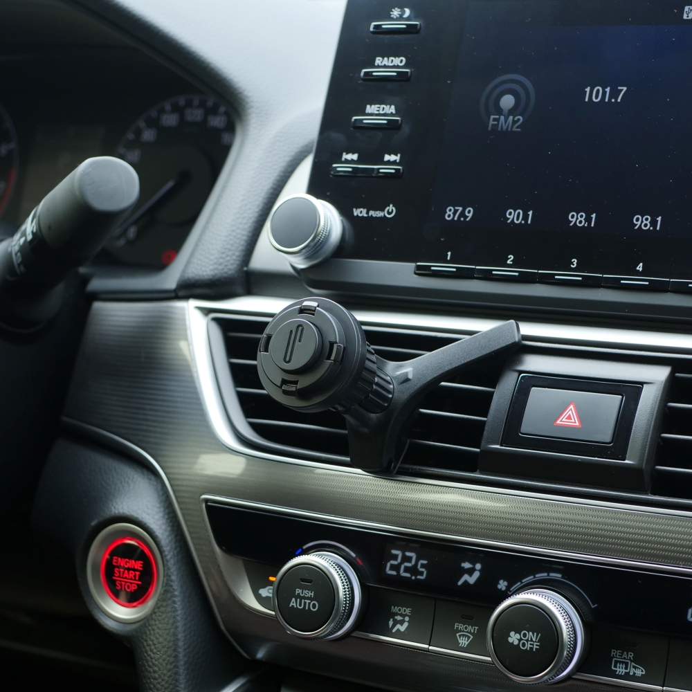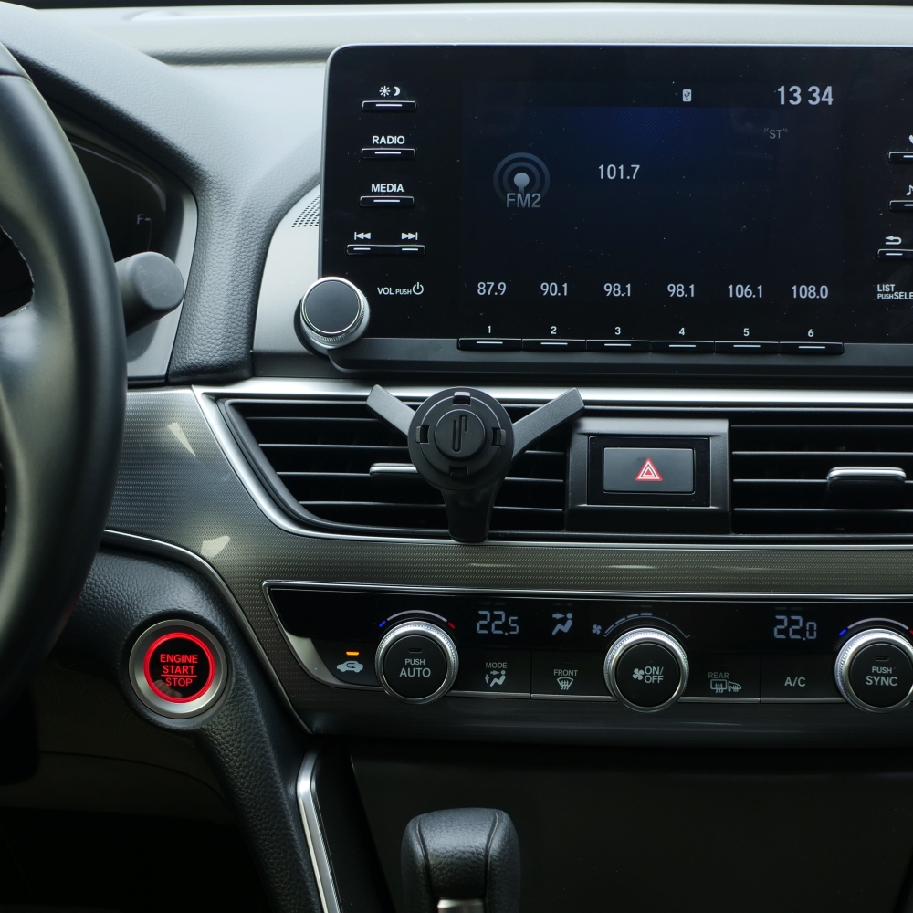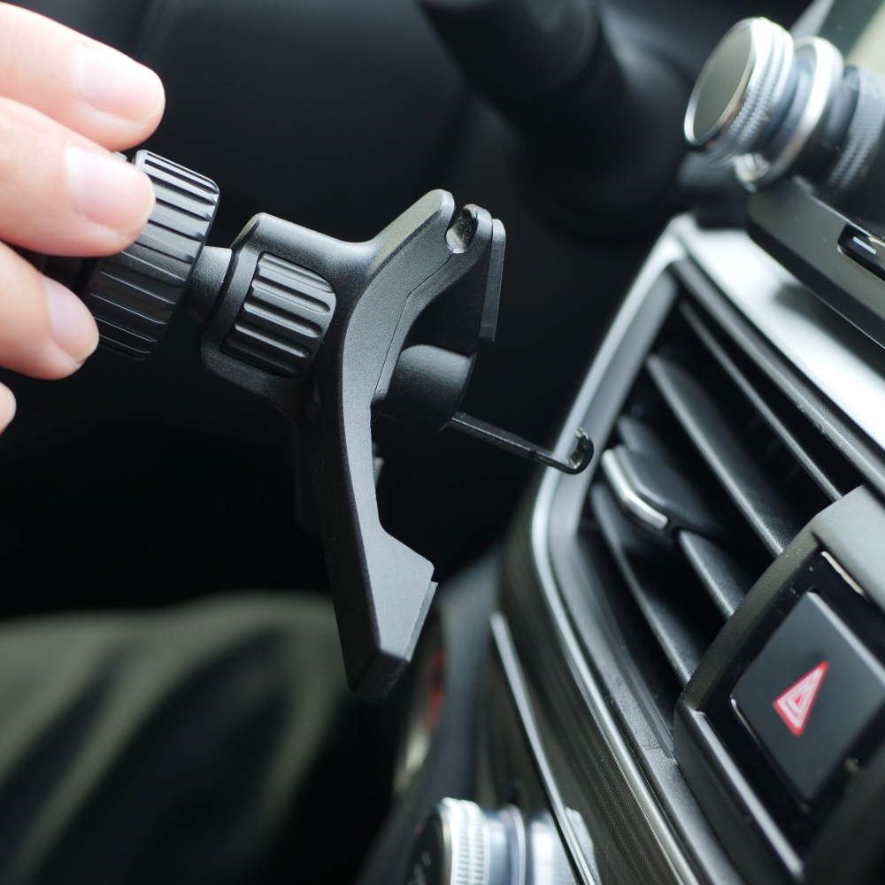 Uniwersalne Mocowanie: Uchwyt jest kompatybilny z okrągłymi, poziomymi i pionowymi kratkami wentylacyjnymi, co umożliwia elastyczne zamocowanie w dowolnym położeniu.