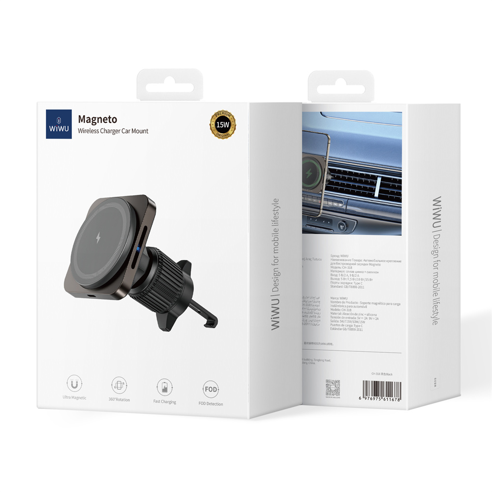Super mocny i stabilny, bez obaw przy problemie nagłego hamowania. Szybkie ładowanie o mocy 15 W w szczytowym momencie. Chłodzenie wentylatorem z tyłu. Obrót w poziomie i pionie o 360°. Precyzyjne wyrównanie magnesów zajmuje tylko kilka sekund.