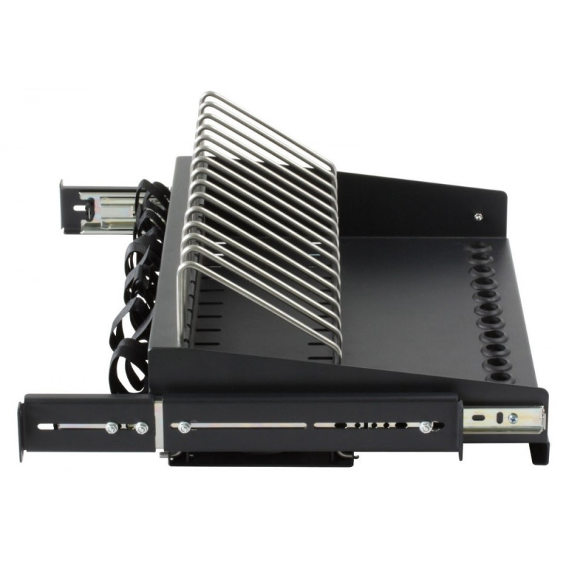 Półka Techly I-CABINET-TRAY14BK, P/N: 107753 – Wysuwana Półka Rackowa 19” do Przechowywania i Ładowania Urządzeń Mobilnych, 14 Slotów 22 x 230 mm