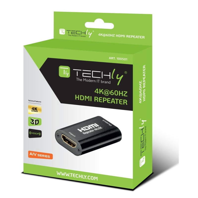 Wzmacniacz sygnału 4K HDMI Techly  IDATA HDMI2-RIP4KT umożliwia zwiększenie zasięgu sygnału HDMI do 40m poprzez jego dekodowania a następnie regenerację przy rozdzielczości 4K z praktycznie dowolnego źródła sygnału HDMI (komputer, konsola gier, odtwarzacz AV, przystawka STB) przy użyciu istniejących kabli HDMI. Wzmacniacz sygnału 4K HDMI Techly  IDATA HDMI2-RIP4KT wzmacnia słaby sygnał HDMI w celu zmniejszenia lub eliminacji szumów oraz zniekształceń obrazu na wyświetlaczu HDMI. Instalacja typu Plug and Play oraz brak konieczności specjalistycznej konfiguracji gwarantują szybką i prostą obsługę.