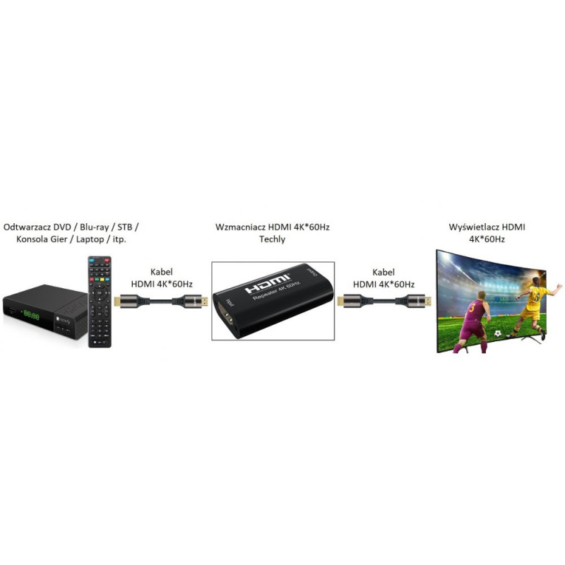 Wzmacniacz sygnału 4K HDMI Techly  IDATA HDMI2-RIP4KT jest idealnym rozwiązaniem problemów z długością przewodów HDMI w trakcie pokazów branżowych, w salach konferencyjnych, pomieszczeniach biznesowych, szkołach oraz domowych systemach kinowych. Wzmacniacz sygnału 4K HDMI Techly  IDATA HDMI2-RIP4KT oferuje możliwość umieszczenia wyświetlacza wysokiej rozdzielczości lub projektora w odległości do 40m od źródła sygnału HDMI. Dla uzyskania optymalnej jakości oraz wydajności zaleca się stosowanie jedynie wysokiej jakości kabli HDMI oraz umieszczenie wzmacniacza mniej więcej w połowie odległości pomiędzy źródłem sygnału a wyświetlaczem HDMI.
