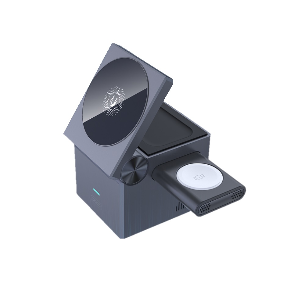 XO CX027 3w1 to bezprzewodowa ładowarka indukcyjna, przeznaczona do ładowania smartfonów, słuchaweki smartwatchy. Po prostu umieść smartfona na podkładce a ładowarka zacznie go automatycznie ładować. To sprawia, że doskonale sprawdza się w domu lub w biurze. Ładowarka 3w1 idealnie przyda się osobom które potrzebują energii i nie chcą korzystać z kabli. Jej małe wymiary pozwolą zabrać ją w każdą podróż.