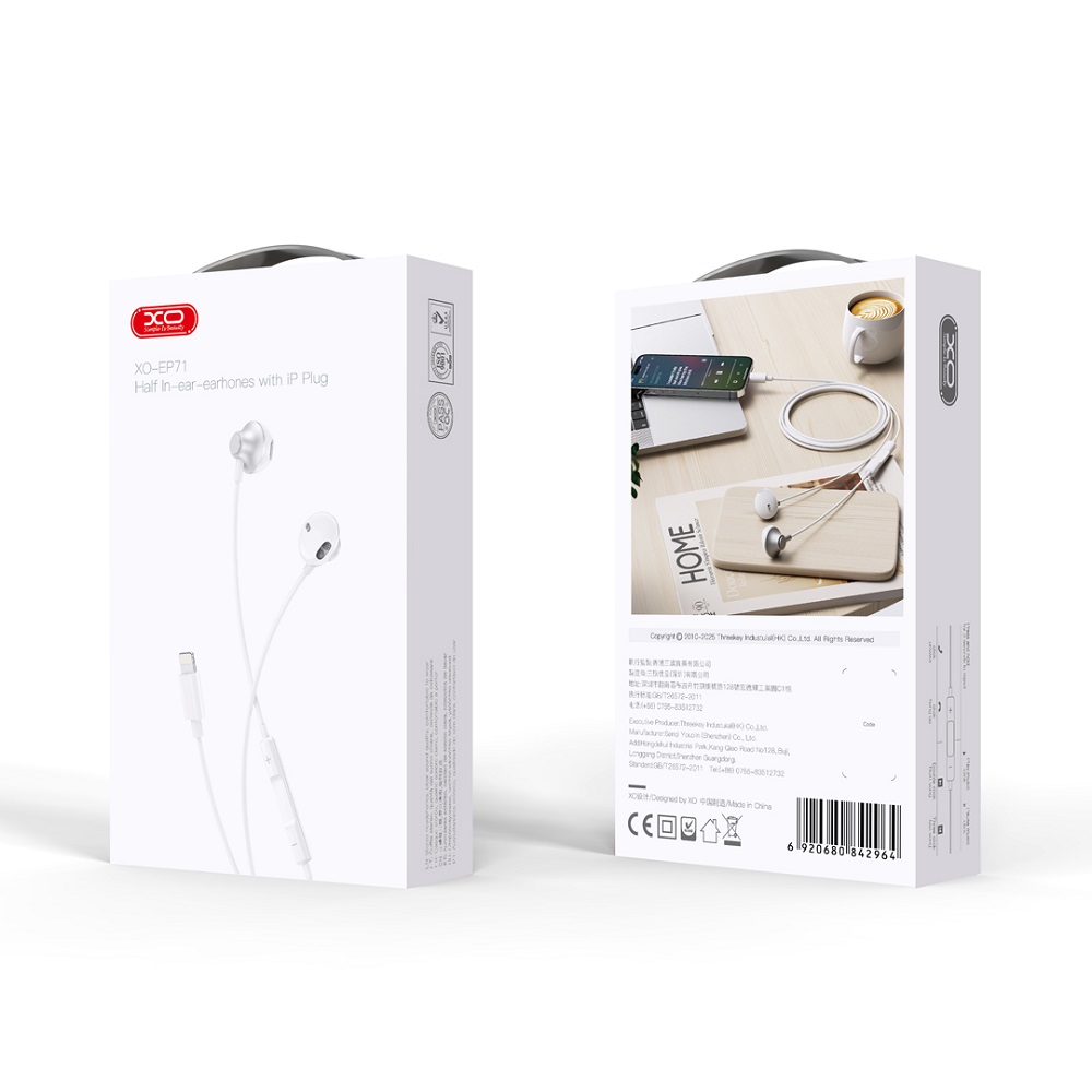 XO EP71 to douszne słuchawki przewodowe do smartfonów wyposażonych w gniazdo Lightning. Przewód wykonany z elastycznego silikonu zapewni jak najdłuższy czas użytkowania. Słuchawki nie wymagają dodatkowego połączenia poprzez Bluetooth.#13#10