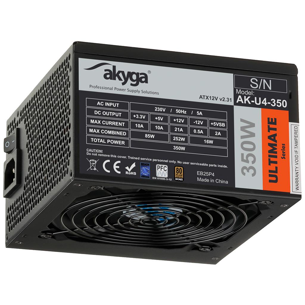 350 W marka: AKYGA o parametrach: Zasilacz ATX 350W Akyga Ultimate AK-U4-350 80+ Bronze Fan12cm P8 4xSATA PCI-E