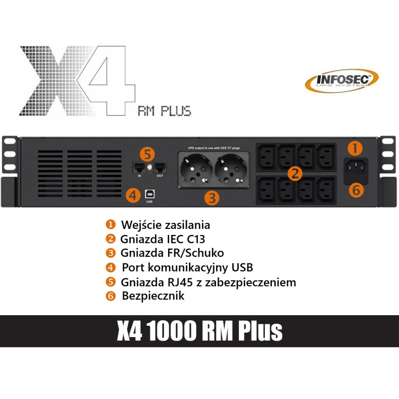 Zasilacz awaryjny UPS X4 1000 RM Plus, 1000VA, 600W, 8x C13, 2x FR/Schuko