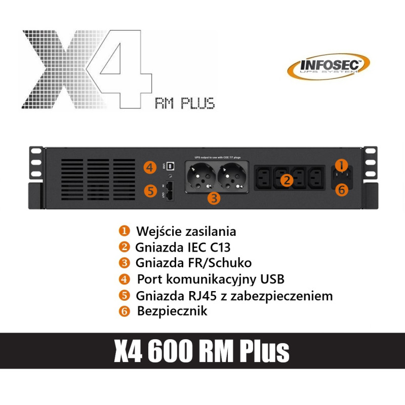 • Seria UPS-ów X4 RM PLUS idealnie nadaje się do skutecznej ochrony zasilania sprzętu przetwarzającego dane spowodowanymi zakłóceniami elektrycznymi